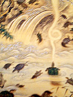 13日(水) これから時々ですが、日々のことをつづって行こうとおもいます。三日坊主になりませぬように。 今日は午前中に京都文化博物館でやってる”狩野派展”にいってきました。とってもおもしろかったです。最近琳派ばっかり見ていたので、かなり新鮮でした。すごかったんです。。。ある意味。おもわず吹き出してしまいそうな絵がいっぱいありました。なんちゃら派とか、あんまりわからないんですが、狩野派ってああゆうもんなんですかね。。。??見方、まちがってるのかなぁ〜?ニッポン画家に質問してみたいです。そしてお昼はうわさの出町柳のファラフェル屋にいってきました。うまい! |