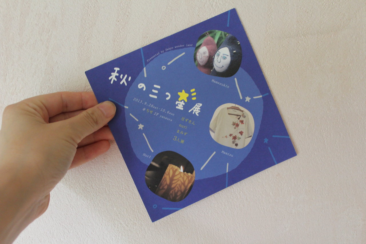 今月末からのちせでの3人展のフライヤーが出来上がりました。今回のはハガキになってないので、店置きがメインです。お客さんへの発送はない予定です。左京区のいろんなお店においてあると思います。見つけてください!