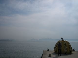 直島はジェームズ・タレルやモネの作品とその作品の為に作られた安藤忠雄の建築の美術館、地中美術館があります。街の中にも家プロジェクトという、古い家屋を改修しタレルや千住博や現代美術の作品が展示されていたり、野外にも草間弥生やニキ・ド・サンファル野彫刻があったりで有名な島です。