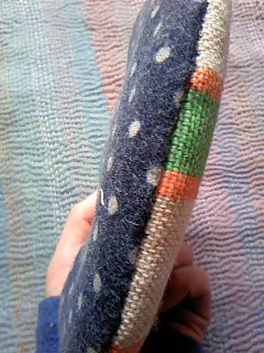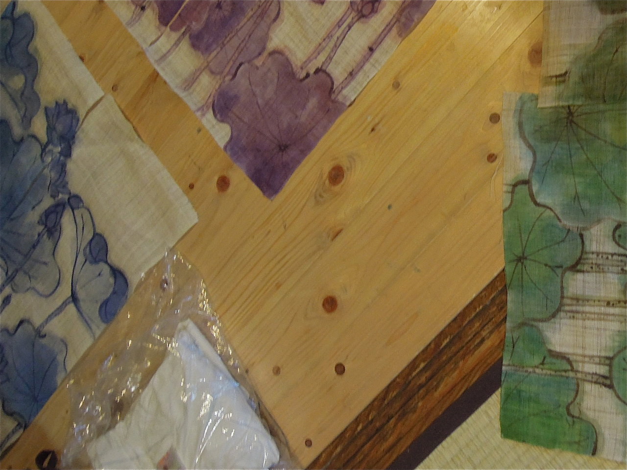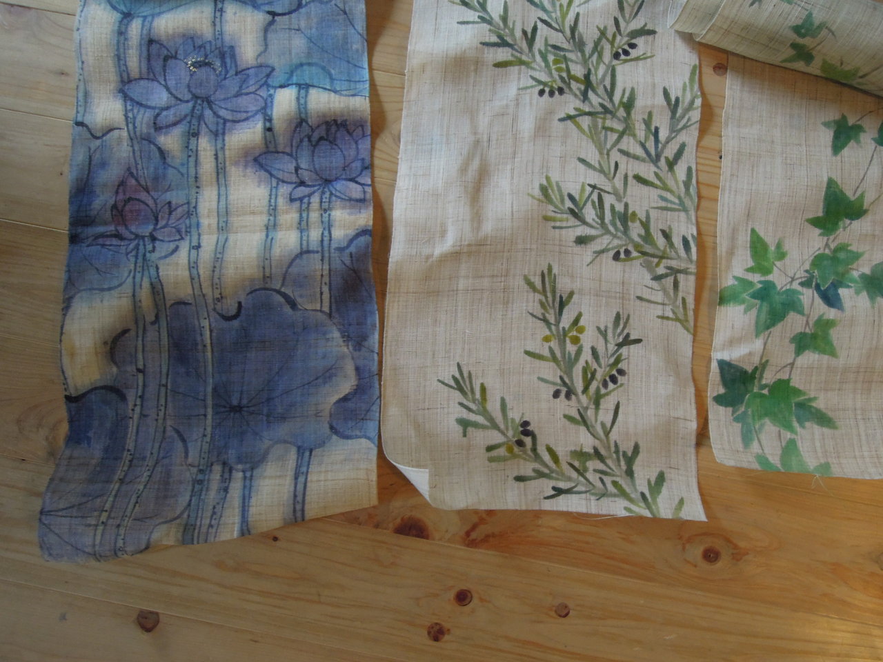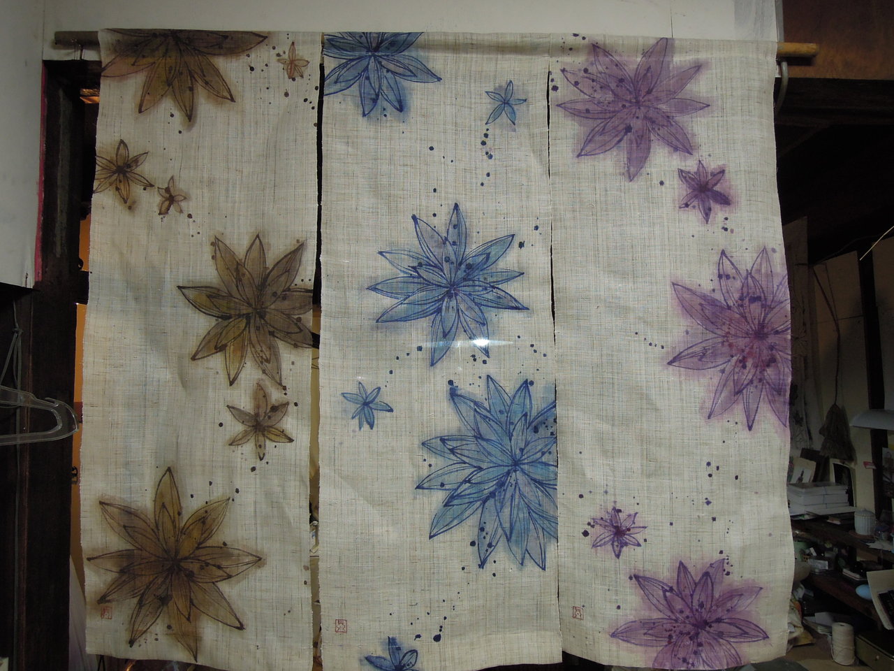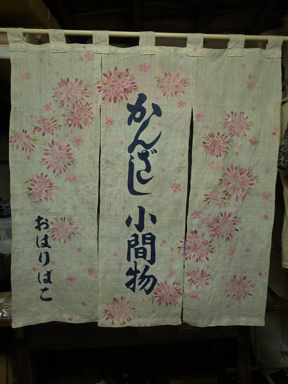 写真はテーブルランナーに作ったのですが、棒通したらタペストリーにも、2枚組み合わせて暖簾にもなります。