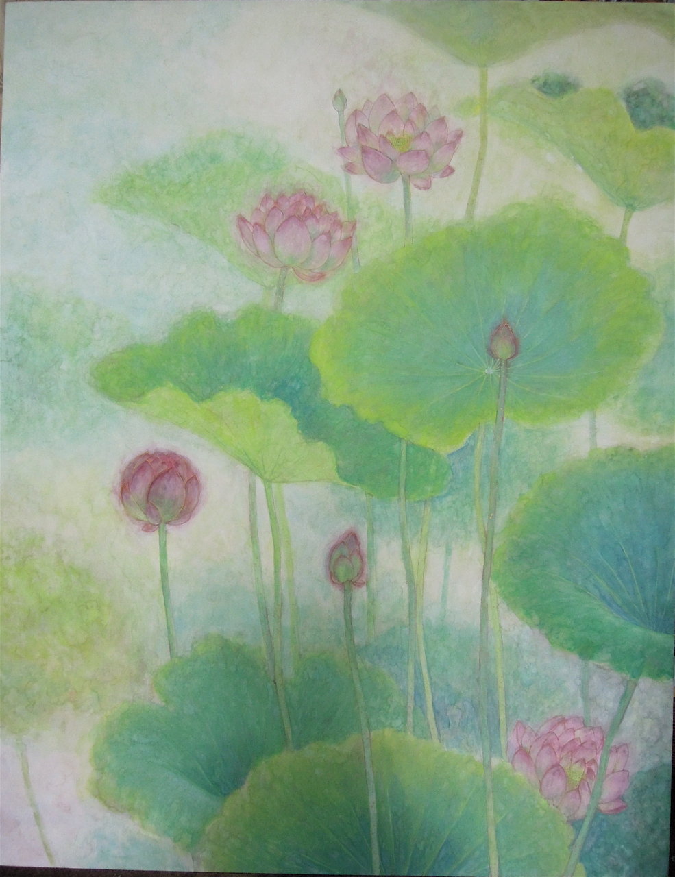 帰ってきて昨日から来月の作品展に向けて制作です。久しぶりの日本画。しばらくは地味な下準備です。