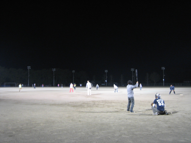 出展者30人集まって、町営のグランド貸し切ってナイター試合!半分以上ルールもわからない素人にもかかわらず、本気の両チームのピッチャーのおかげでなかなかの白熱した試合。試合に向けての日々のキャッチボールの練習も。
