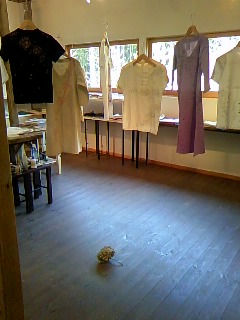 最近の展示会といえば、絵の作品がメインでTシャツが隅の方に追いやられだったのですが、今回はドカンとTシャツメインの展示。白い壁と木の床と窓からの柔らかな日差しのとても素敵なギャラリースペースで広々と展示させていただきました。