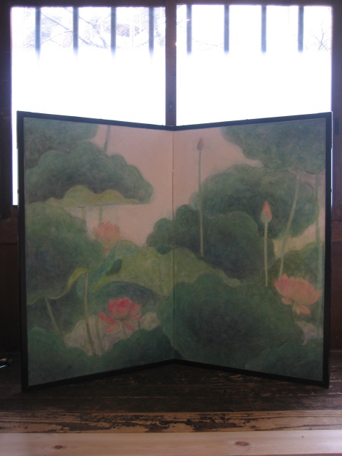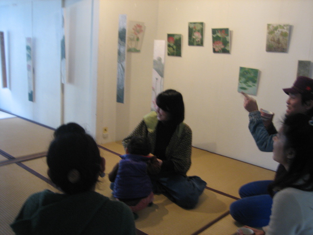 2階から野外につってた枯れ蓮の絵をみていただき、
