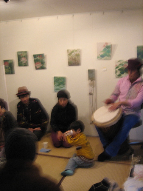 この企画は、作品に囲まれ、見に来てくれた方々と、大好きなターケンのジャンベと、大好きなお酒を飲みたいという私にご褒美なイベントだったのですが、たくさん集まってもらって楽しんでもらえて盛り上げてもらってありがとうございました。ターケンありがとう。