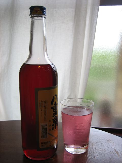 梅干しに入れる赤シソを少し置いておいて、酢と砂糖でシロップを作りました。手作り市に持っていってたやつです。