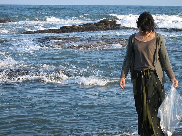 冷やさない方がいいので、毛糸の帽子をかぶる。