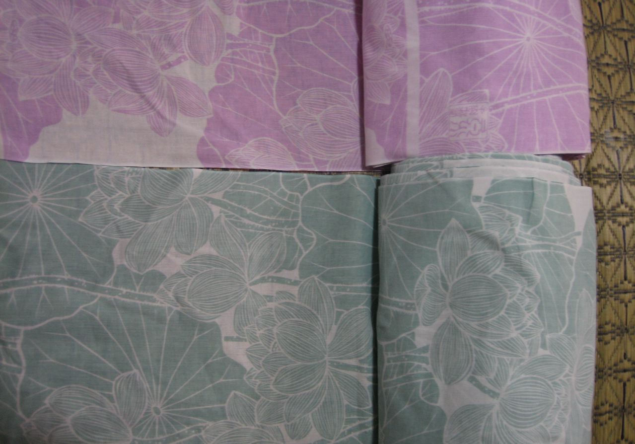てぬぐいの新色のサンプルが届きました。今回はさわやかに淡い赤紫と淡い緑。爽やかやさしい色合いです。今月の手づくり市(今月も抽選あたりました☆)に新色持って行きます。