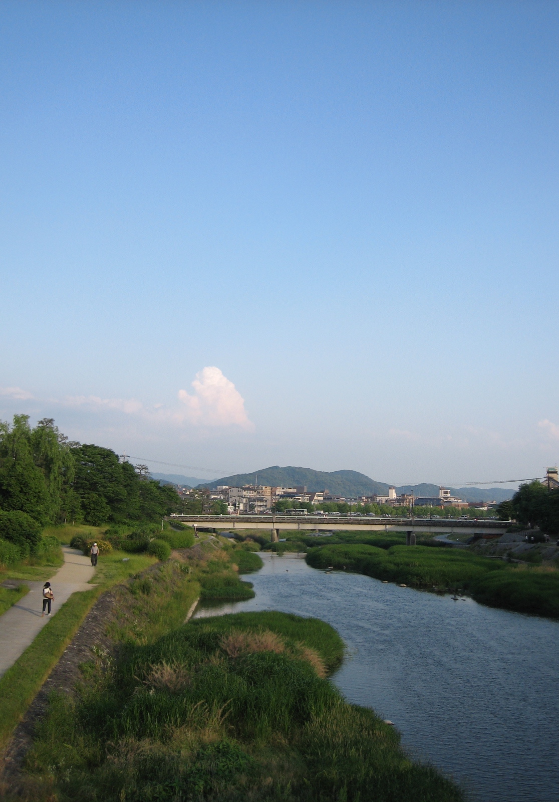 鴨川沿いをのんびり歩く。もう夾竹桃もたち葵も咲き出してます。どうも頭のだるさが抜けないなぁ…そうだ、バイクに乗ろう!風を切ったらスッキリするはず!ということで、久しぶりのバイク気分で、賀茂街道をひたすら北上。賀茂川沿いのこの道は街路樹が生い茂っていて緑のトンネルがお気に入り。どんどん山が近づいてきます。雲ヶ畑まで行って、静原の田舎道を通って、大原に抜けて帰ってきました。のんびりこ一時間コース♪やっぱり山は気持ちいいなぁ~。