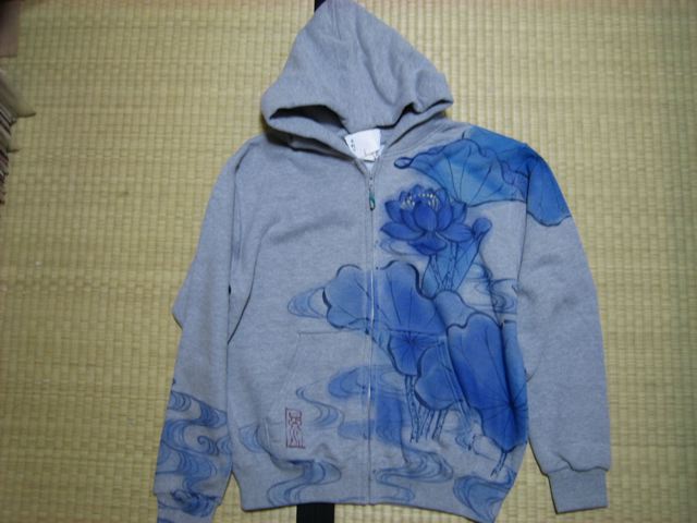 淡藍蓮をパーカーにしたらとってもいい具合に発色して、ステキにしあがりました♪益子でデビューです。