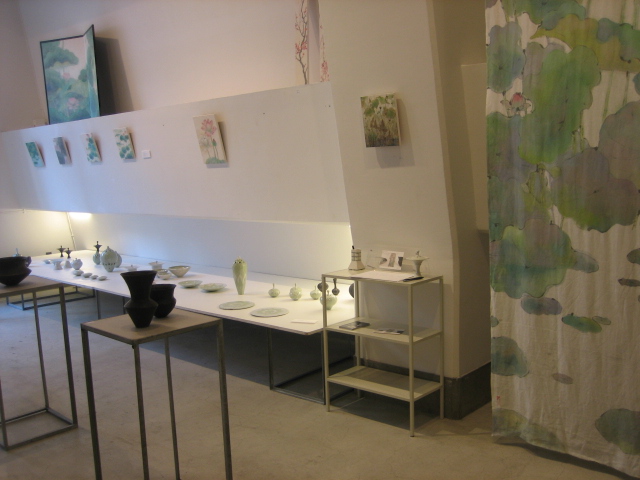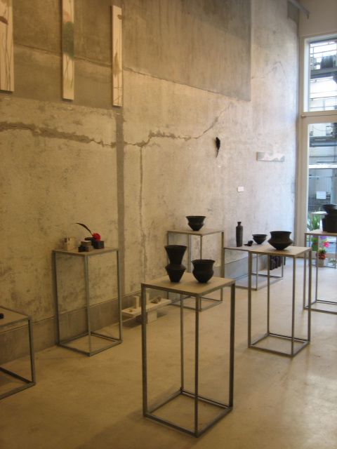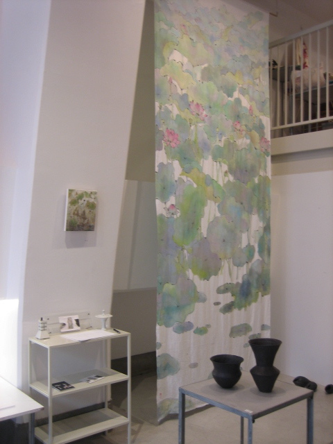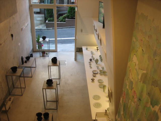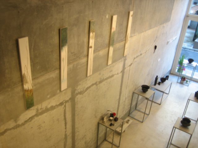 ギャラリーの雰囲気と、伊藤剛俊くんと岩田智子さんの陶の作品と、私の絵と。