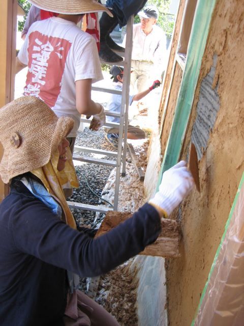 そして今日は関東から塗壁隊のみなさんが15人もいらっしゃって、みんなで土壁塗りをやってきました。
