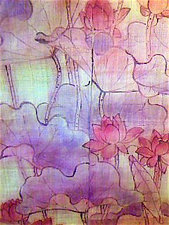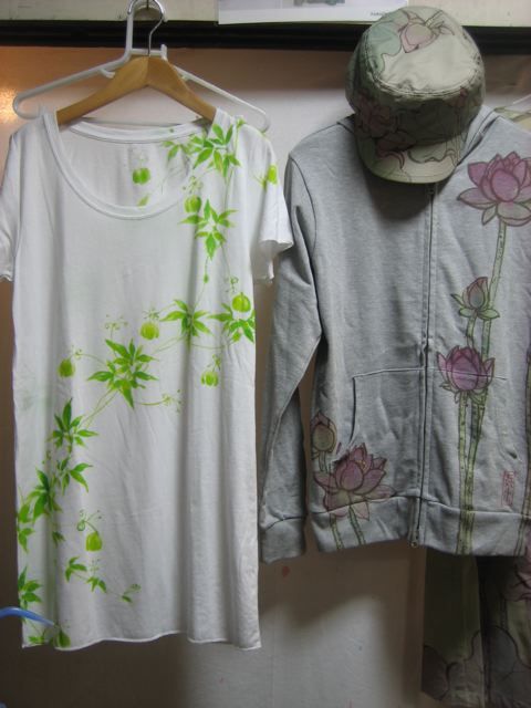 秋でも夏でもないこの季節での個展。焦点がしぼりにくい。まだまだ暑くて、長袖や秋柄の制作がまったく乗らない。タイトルはそう、『はちすのねがい』。素直に蓮をたくさん描きましょう。