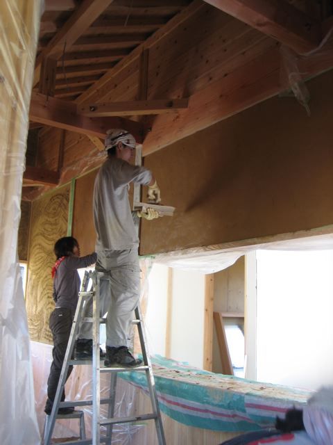 塗り壁隊の皆さんは一泊して、明日土壁をほぼ完成させる予定だそう。
