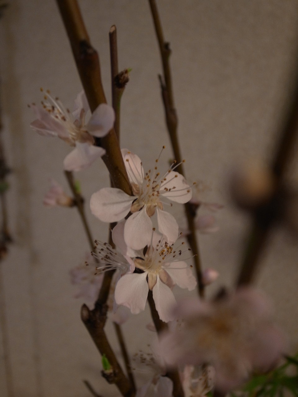 部屋の桃の枝も蕾がどんどん開いていきます。