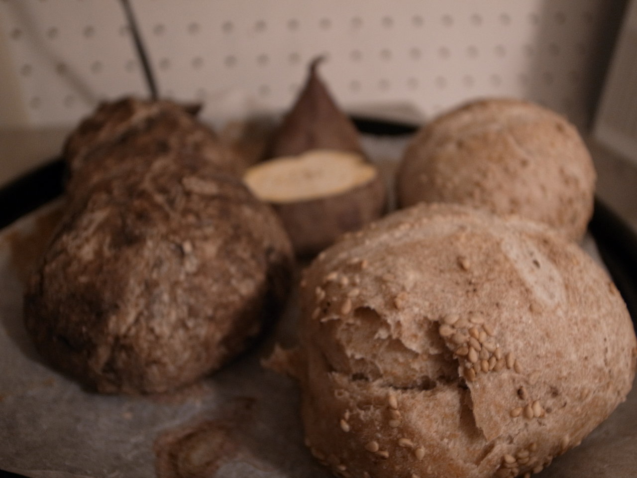 今朝もパンを焼きました。なんでかオーブンから出すと写真をとりたくなるのです。
