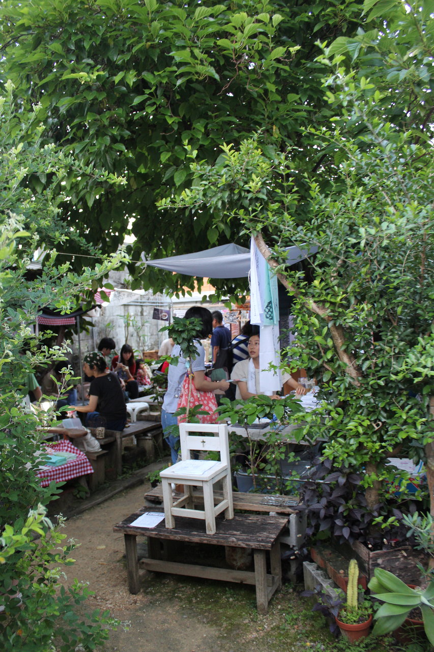 土曜は雨は降らず、国際通りから一本入った裏路地にあるひばり屋さんで野外開催されました。