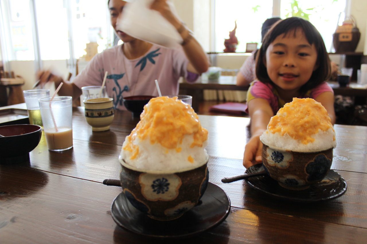 みよ家でソーキそばとぜんざい。(そこに甘く煮た金時豆がはいってるかき氷を沖縄ではぜんざいと言うそうです)http://tabelog.com/okinawa/A4703/A470304/47005185/
