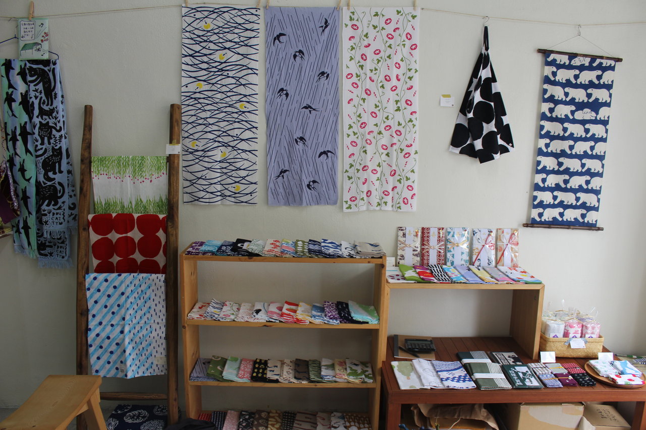 手仕事のもののセレクトショップでsousouやかまわぬなどなどおしゃれな手ぬぐいいっぱいでした。